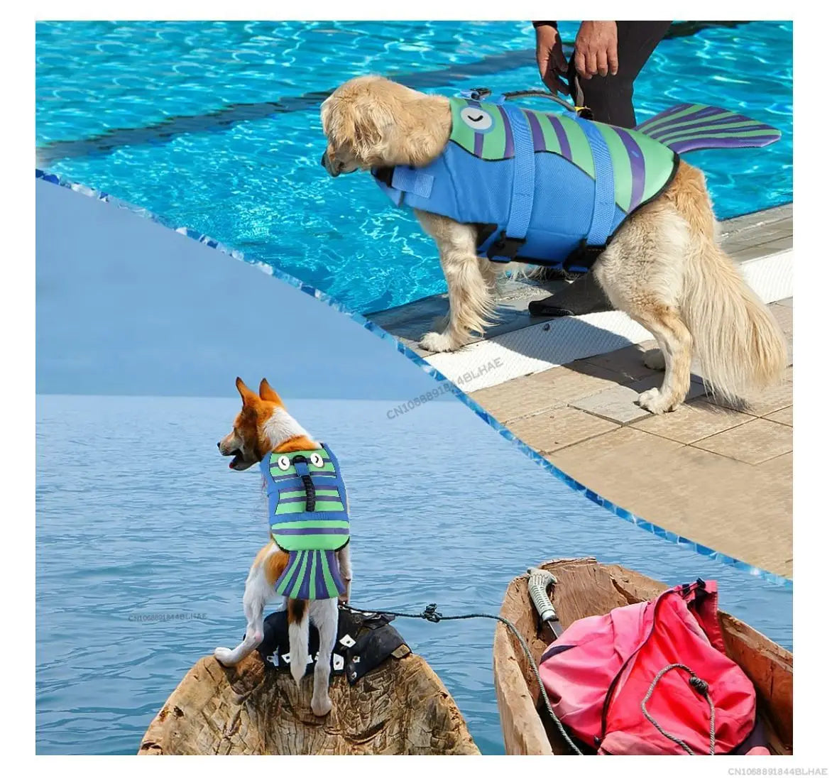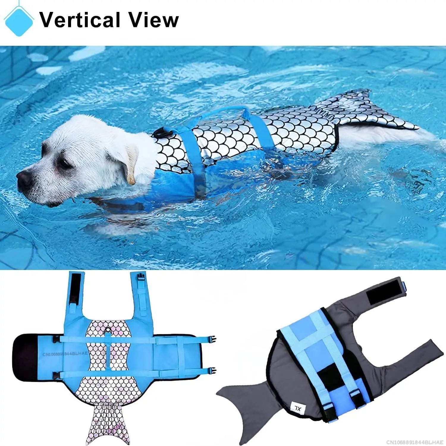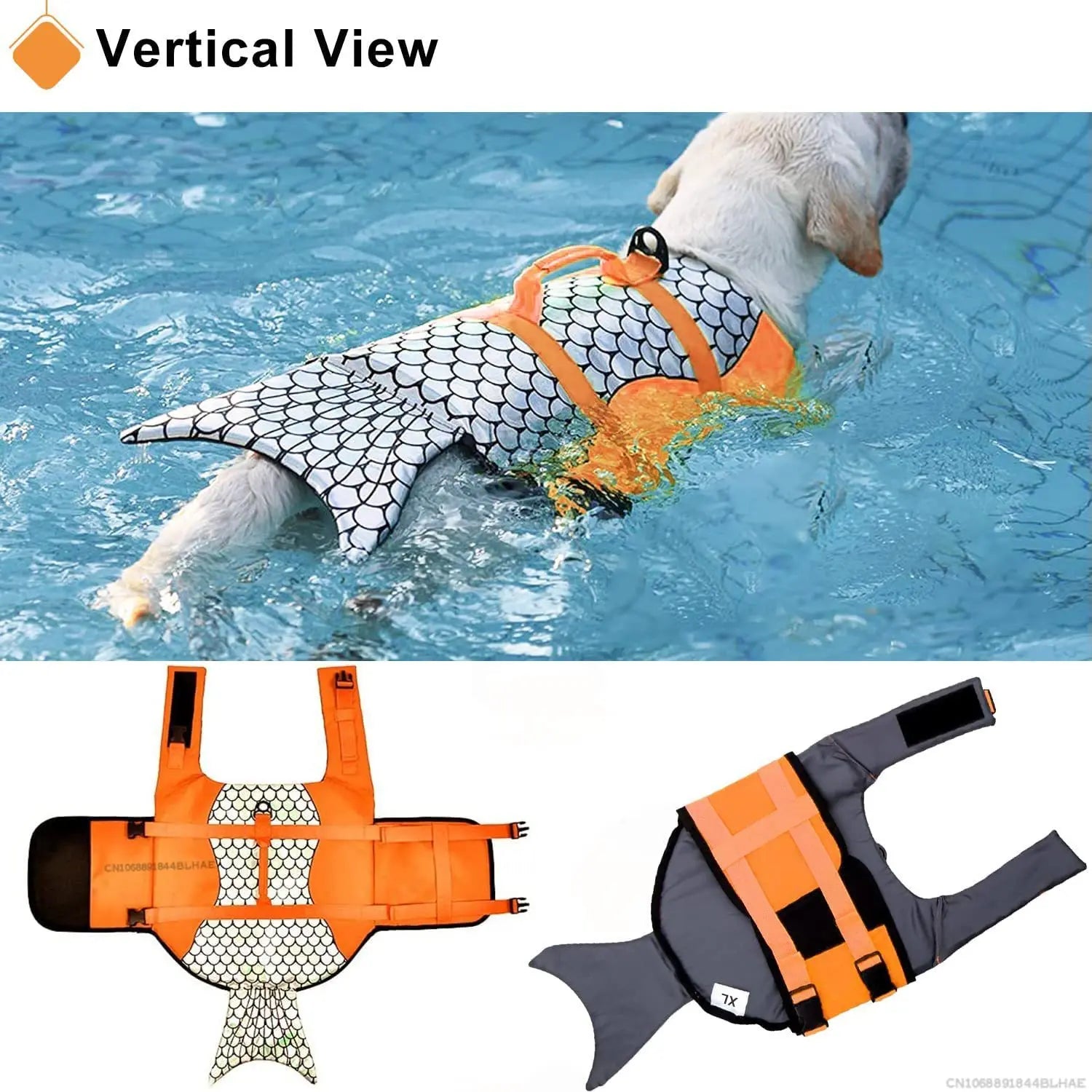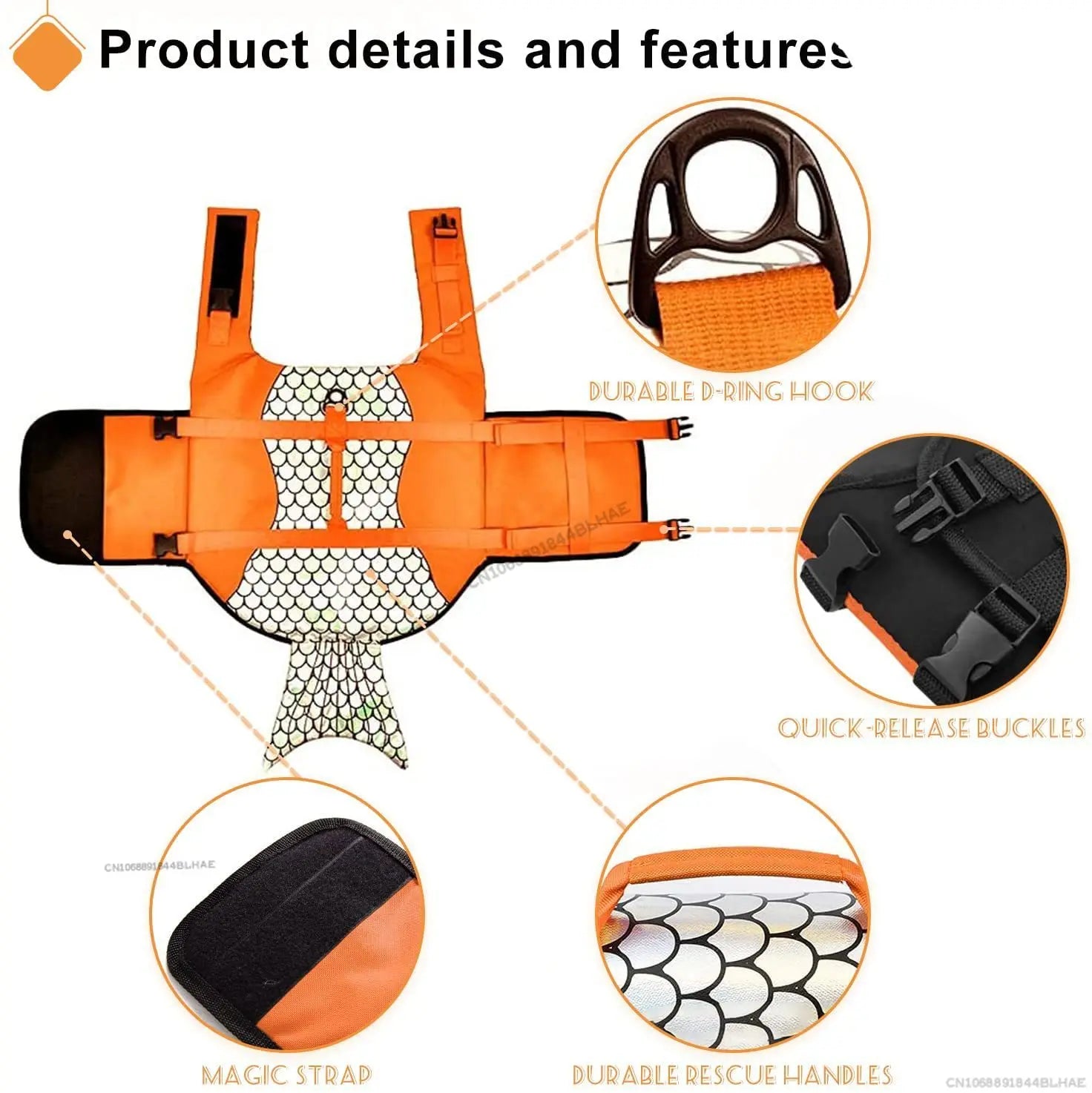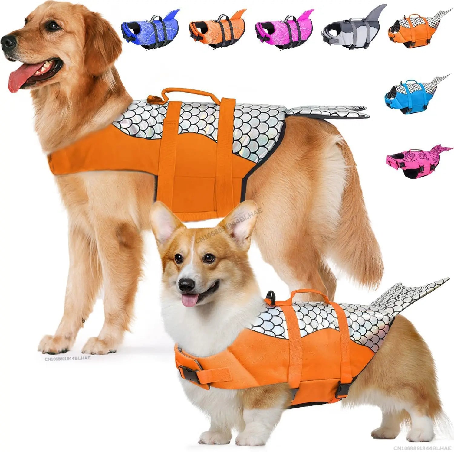 Dog Life Jacket Ripstop Shark Vests Shape Dog Lifesaver With Rescue Handle Pet Safety Swimsuit For Swimming Pool Beach Boating