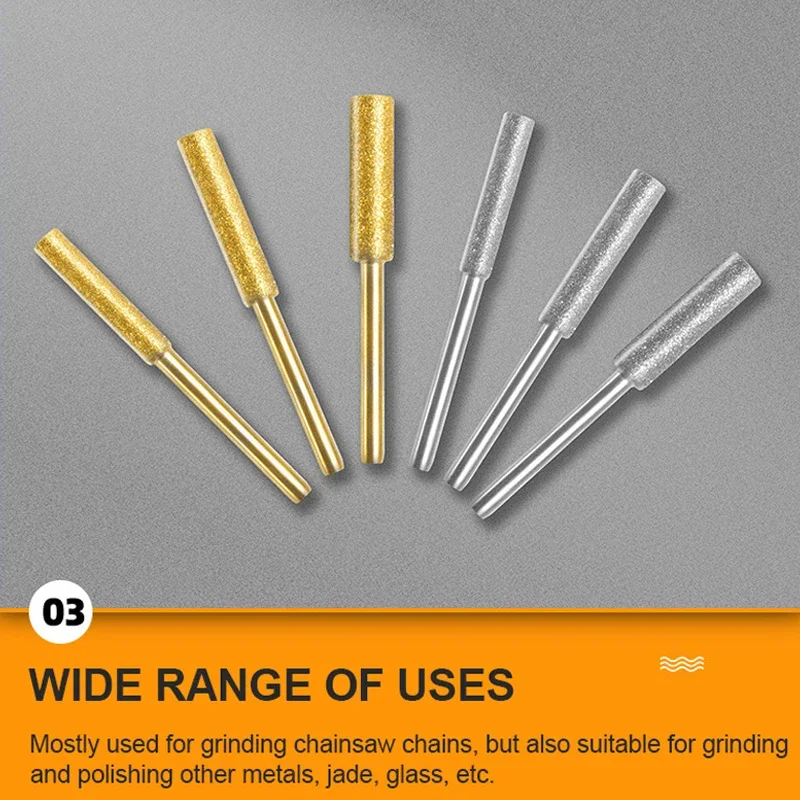 3/4/5/6pcs Diamond Coated Cylindrical Burr 4/4.8/5.5mm Chainsaw Sharpener Stone File Chain Saw Sharpening Carving Grinding Tools