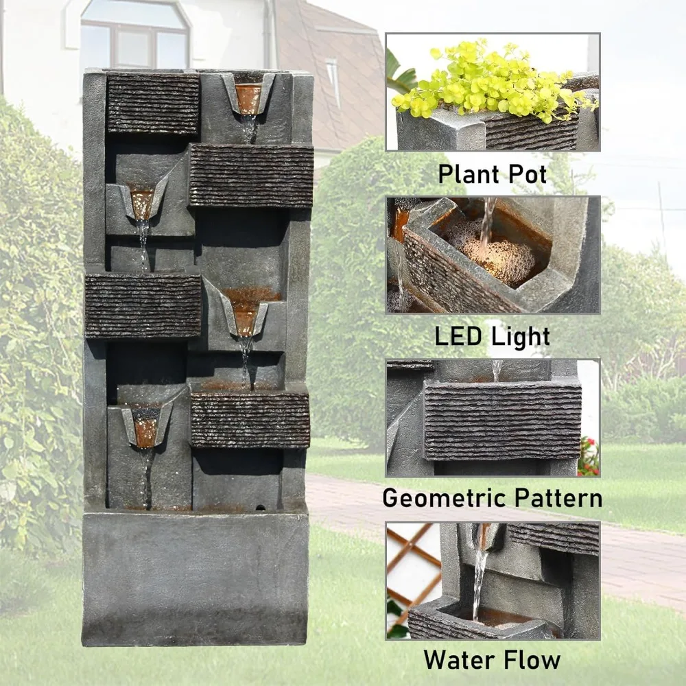 BUY NOW PAY LATER-FREE SHIPPING39.96''H Garden Water Fountains Outdoor 5 Tiers Rock Indoor Waterfall Fountain Modern Floor Standing Water Feature Wall with LED