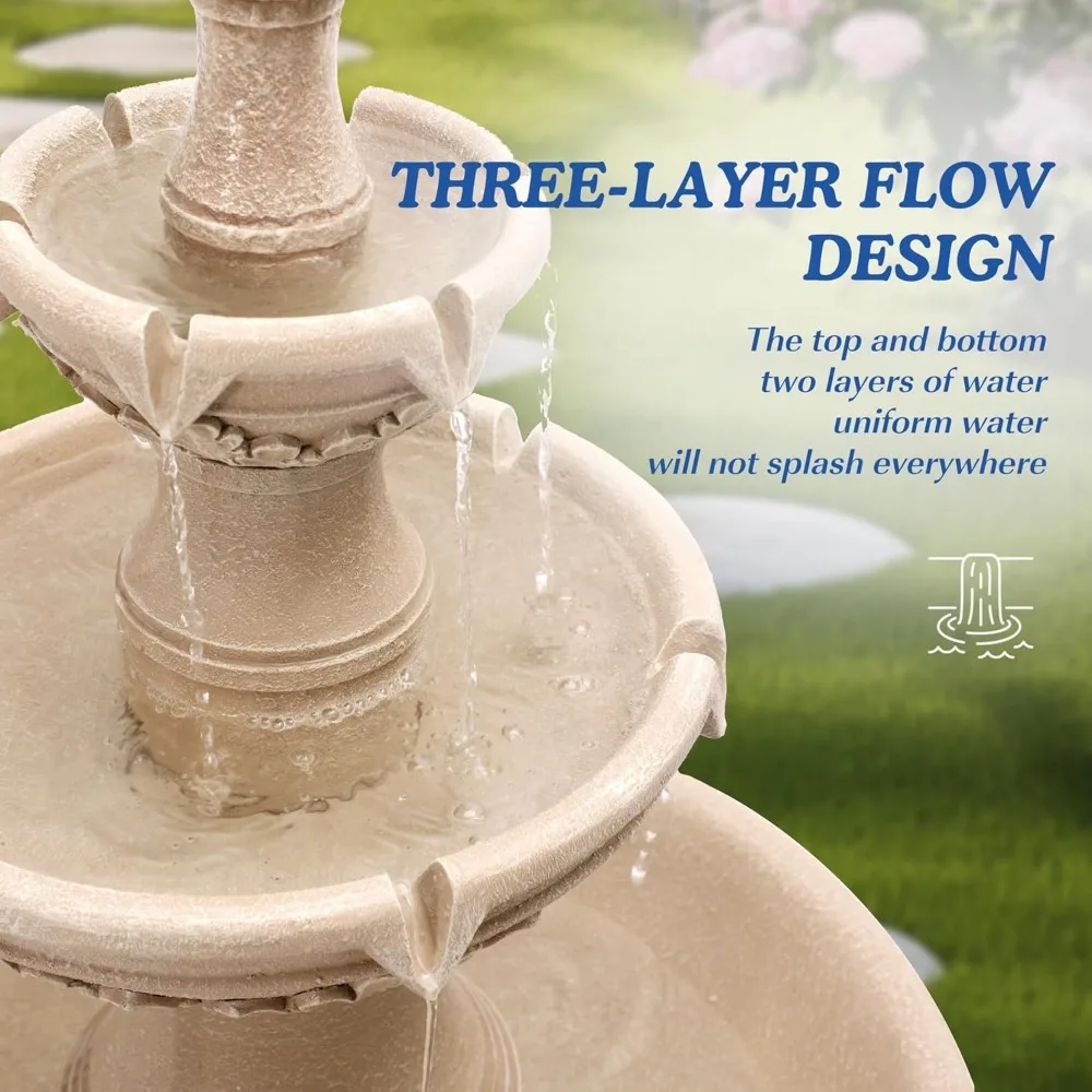 - Relaxing Water Flowing: The 3-Tires garden fountains cascading outdoor provides a sense of fluidity and movement, a soothing stream of water flowing down from each tier, mimicking the sound of a real waterfall, and adding a serene ambienc